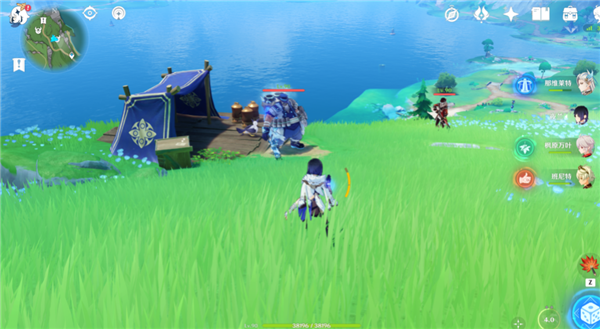 然后我们去左边的营地,打一下营地中间的锅就会冒出愚人众了;