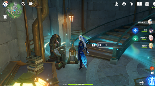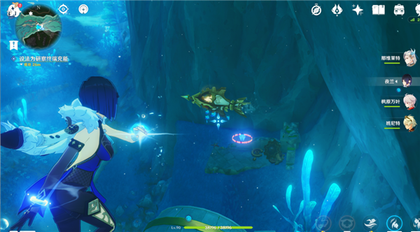 设法给研察终端充能,把机关怪打败后普攻这个蓝色的机关即可开门;