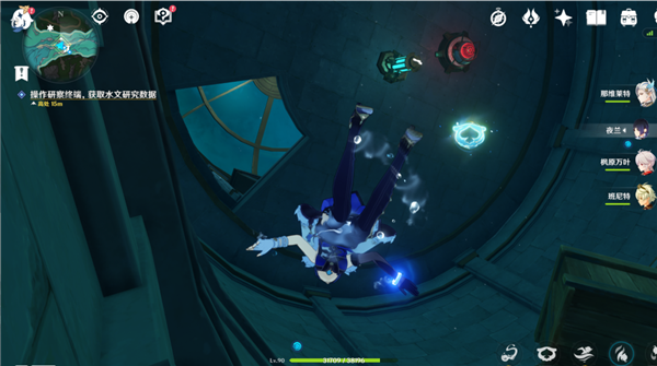 操作研察终端获取水文研究数据,接上能量之后我们直接从顶部回到主控制室;