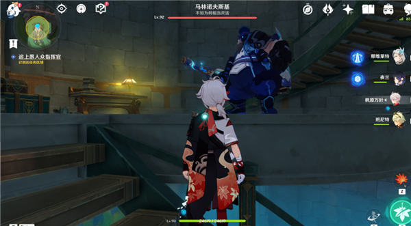 继续从上层的出入口出来,跟着指引追上愚人众指挥官;