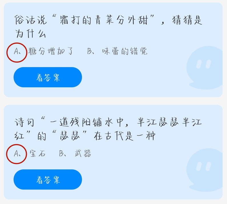 问题1:俗话说“霜打的青菜分外甜”,猜猜是为什么