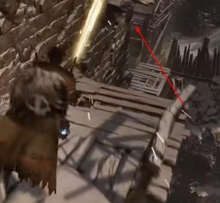 2、在这个路上会碰到很多小怪,在最后能找到一个残缺的位置,跳到箭头的位置。