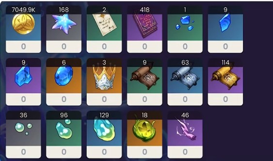 涤净青金碎*6、原海麟角*20、幽光星星*60、异色结晶石*24、摩拉*120000