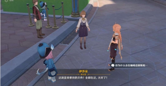 2、根据任务要求我们去和楼梯旁的缪妮交谈,之后再跟着缪妮去咖啡厅和伊沙朵对话即可完成任务。