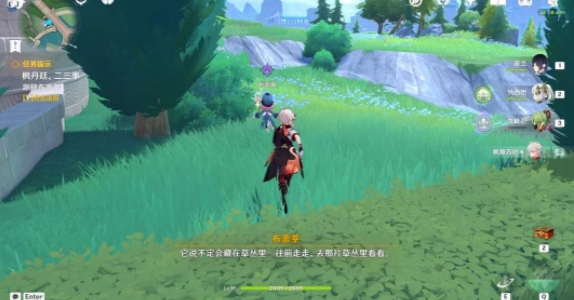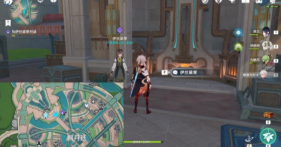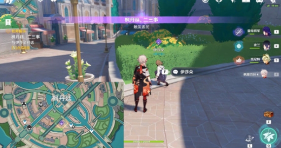 1、我们传送到枫丹廷,找到在草丛边的NPC伊沙朵。