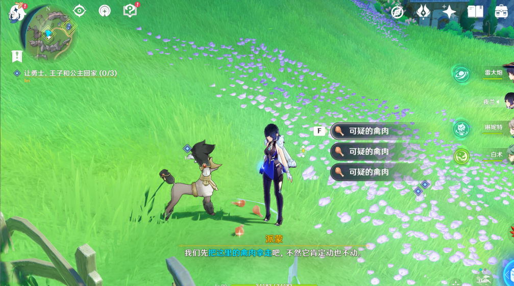 2、接着就是让勇士、王子、公主回家,首先我们拿走可疑的禽肉跟着勇士回去;