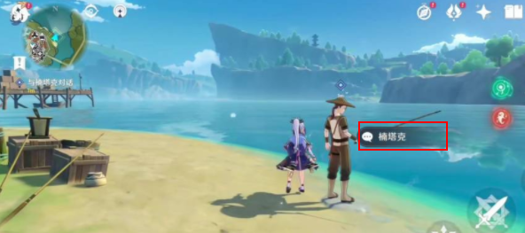 3、我们在果酒湖钓鱼,然后再和楠塔克对话。