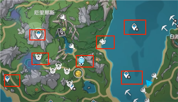 靠近各个传送锚点,可以采集7朵久雨莲。
