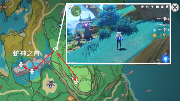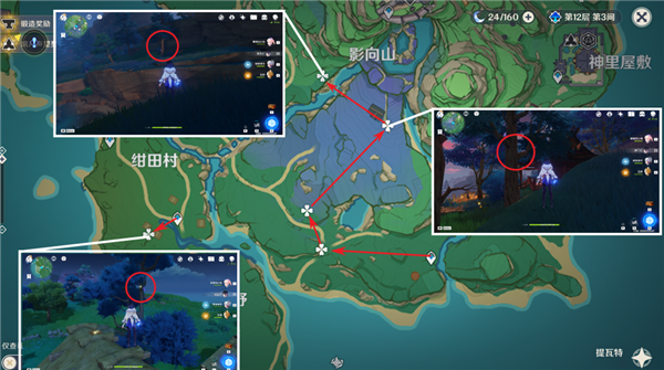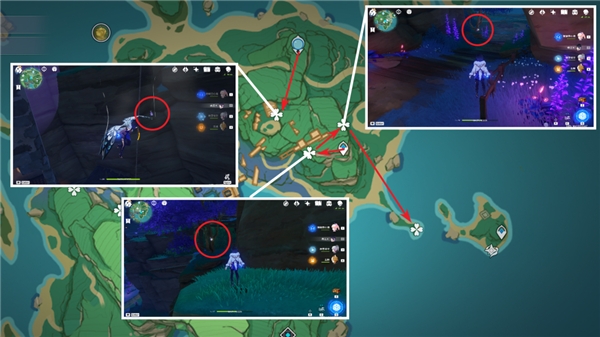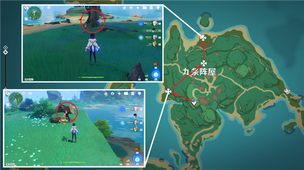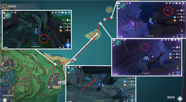 从鸣神大社的传送锚点出发,可以采集到8只鬼兜虫。