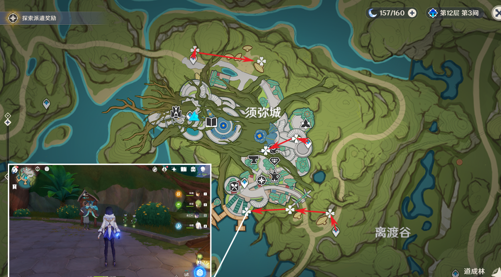 从各个传送锚点出发即可,可以采到11朵。