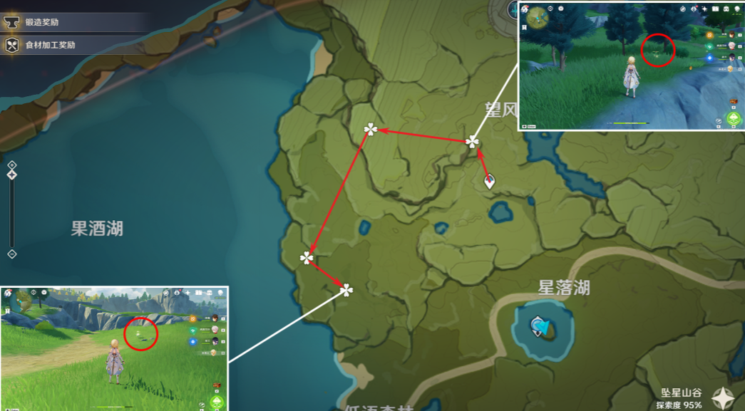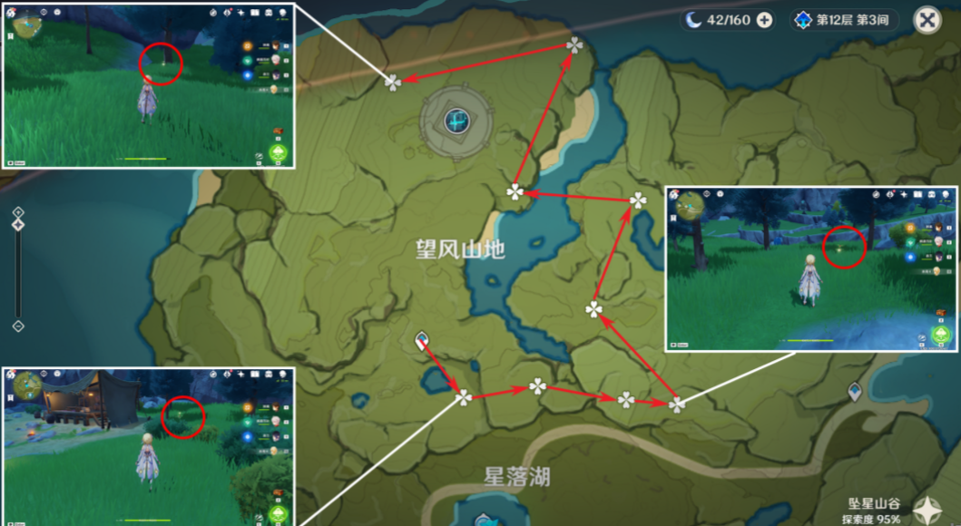 从传送锚点出发找起来很方便,一共可以采到16颗落落梅。