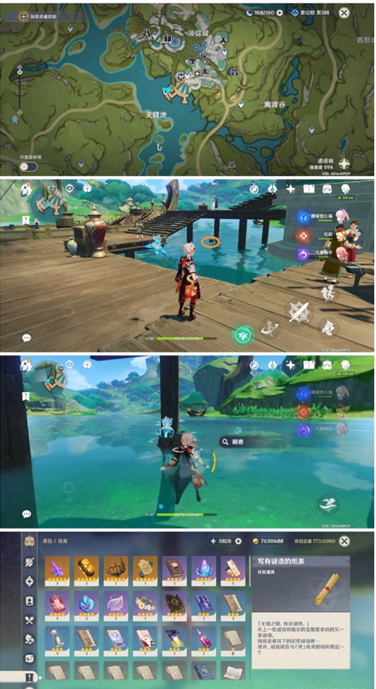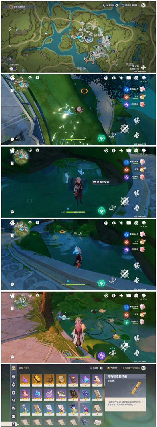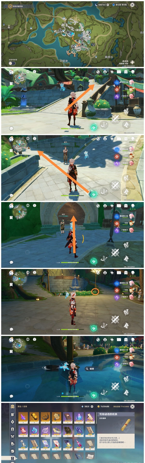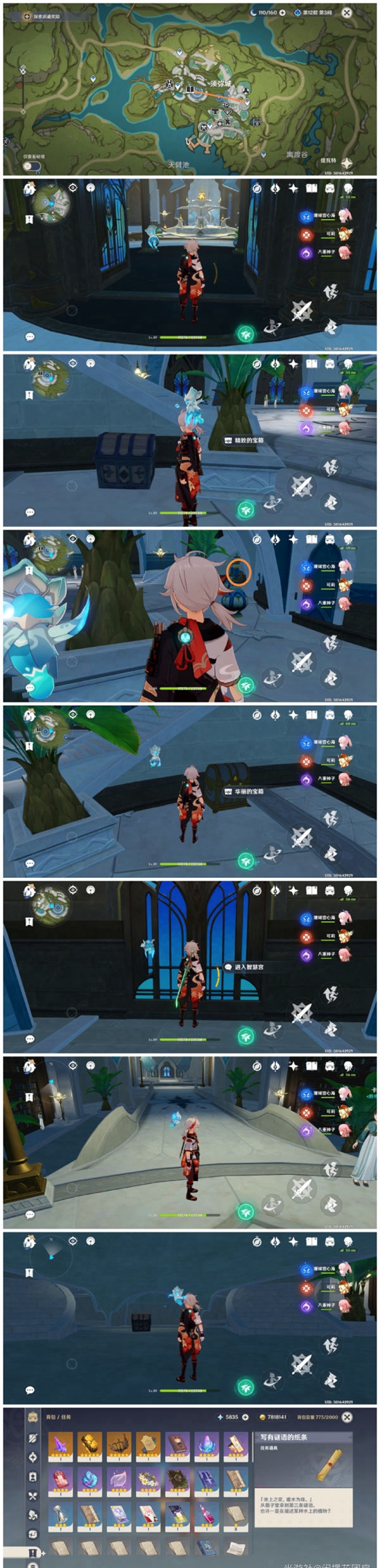 5、最后我们去须弥城最上方的传送锚点,跳到水里获得第四张纸条。