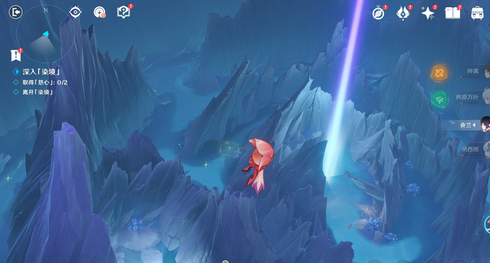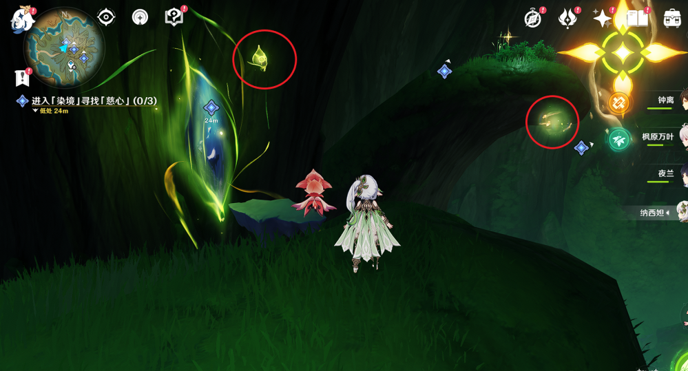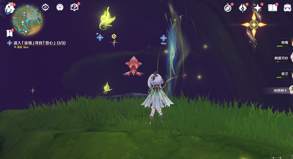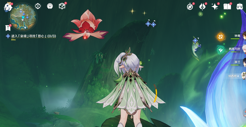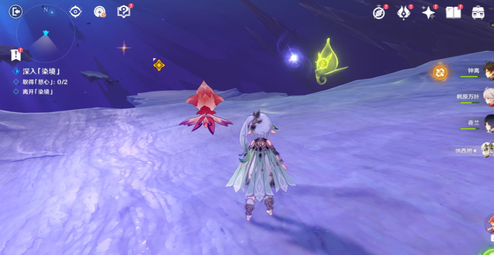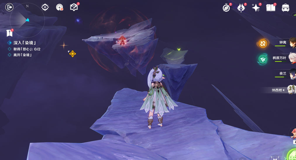 3、之后我们前往染境寻找慈心,先借助四叶印往上飞;