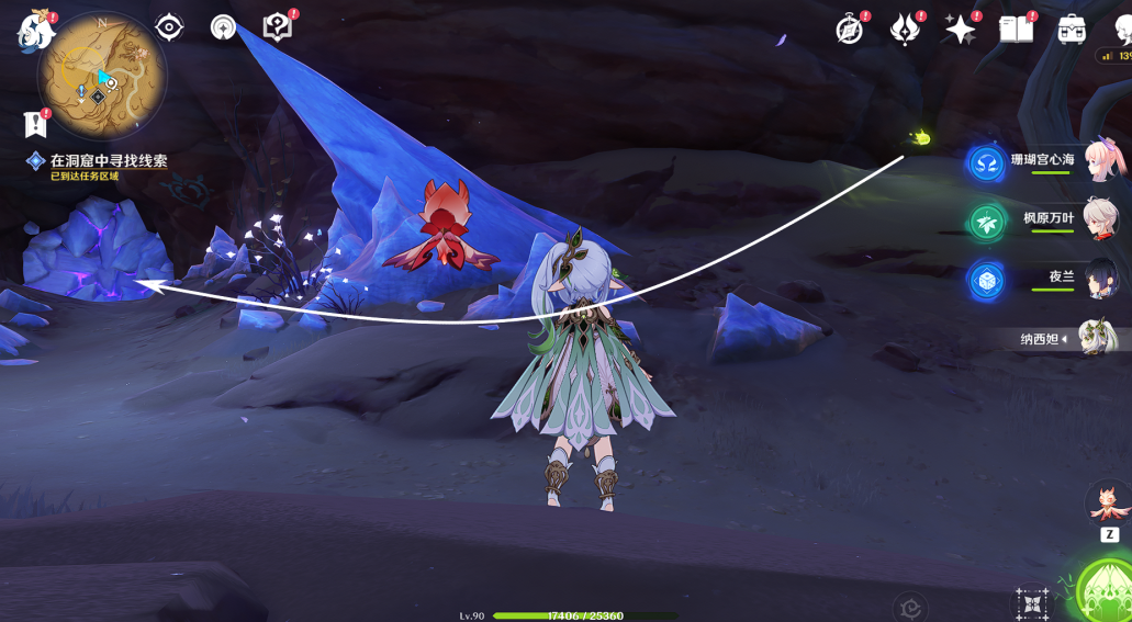 2、继续跟着指引进入洞窟寻找线索,中间遇到怪全部打了。