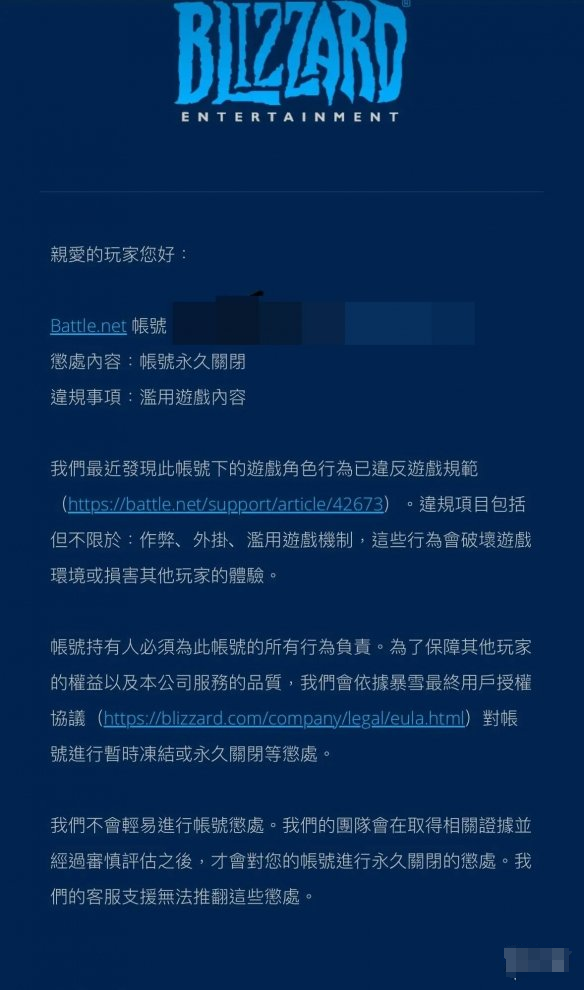 值得一提的是,更新后暴雪开始了新一轮大规模永久封号,不少被封账号仍与利用“复制都瑞尔门票bug”有关,邮件显示“滥用游戏内容”,甚至有网友发现复制bug所得的都瑞尔门票的“图标会变灰色”无法使用。