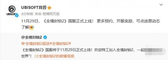 在经历过跳票后,腾讯宣布《全境封锁2》国服将于11月29日正式上线,登陆WeGame平台。与国际服不同,国服采取游戏免费内购收费的方式,任何玩家都能下载游玩。