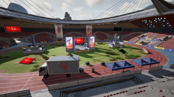 同时,在这次的地图中我们或多或少也能看到各式各样的运动元素,在小镇中篮球场、乒乓球桌等等诸多的体育场馆都显现在眼前。而比起小镇风光,更令人震撼的是一个大型运动场“stadium”屹立与地图中。从田径跑道再到观众席,它近乎一比一还原了体育场带给人们的壮阔,玩家们在错综复杂的体育场中也能进行一场刺激的战斗。除此以外, “Rin Jiang”、“Jao Tin”、“NEOX Factory”等风格迥异的地区也将会与大家一同见面。