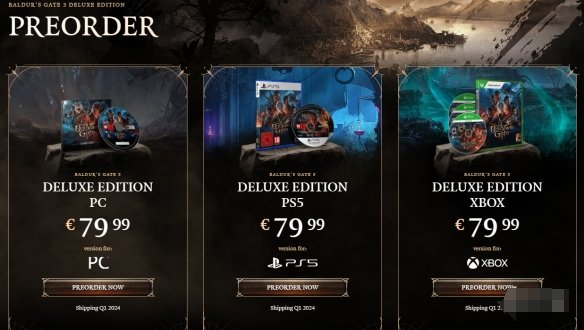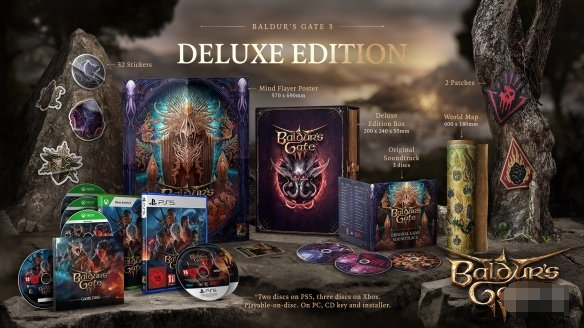 拉瑞安工作室宣布《博德之门3》实体豪华版现已开启预购,PS5、XSX、PC均有光盘,售价79.99美元/79.99英镑,预计2024年第一季度发货。(注:PS5 2张光盘、XSX 3张光盘、PC版 1张光盘仅含下载程序和激活代码)