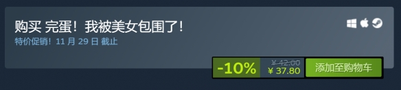 国产真人互动影像游戏《完蛋!我被美女包围了!(Love Is All Around)》参与了Steam秋季大促,迎来史低9折优惠,现在入手仅售37.8元。