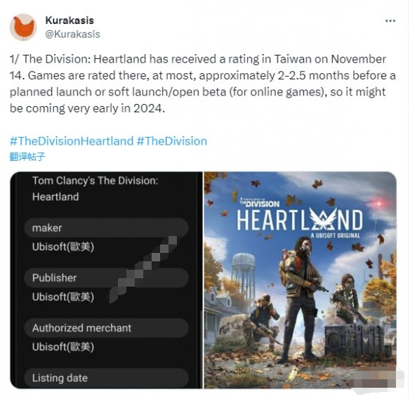 用户Kurakasis发现,《全境封锁:腹地》已在中国台湾地区获得PC版以及游戏机的评级。由于游戏的年龄分级往往发生在开发的后期阶段,即游戏即将发布时,这可能表明《全境封锁:腹地》即将正式发售。
