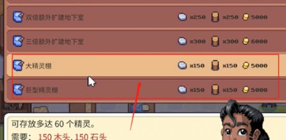 2、在我们获得精灵棚之后,可以对其进行扩充,但需要使用足够的素材才能进行。