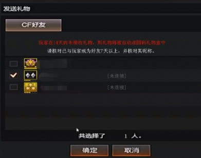 4、选择想要赠送的好友,选择确定就能送出去了。