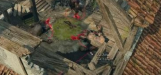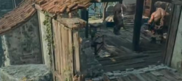 2、在房子右边我们爬上房顶跟食人魔作战。