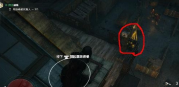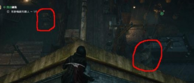 2、首先我们来到制高点,这里左侧有一个挂桶。