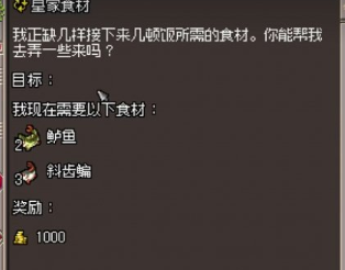 2、塔米卡会给我们任务皇家食材,为国王找一些鱼,我们过来很简单就能完成任务。