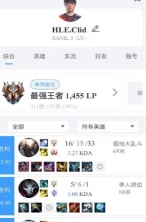 2、关注账号之后就能在这里找到我们喜欢的选手战绩详情。