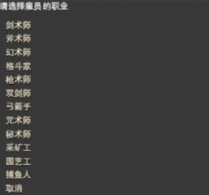 3、然后在雇员列表找到设置雇员职业选项进行转职。