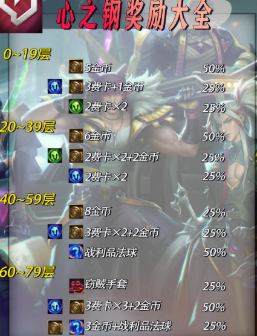 1、0-79层可以获得金币、2费卡、3费卡和法球。