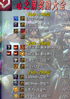 3、160-299层可以获得奥恩装备、纹章之书、辅助装、散件、重铸器。