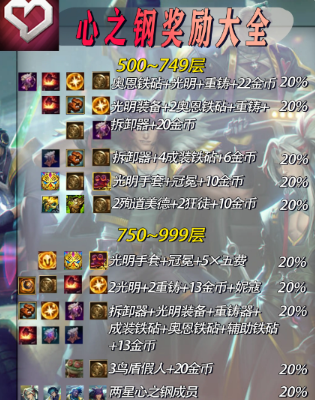 5、500-999层可以获得金币、成装、光明装备、成装铁砧、奥恩铁砧等。