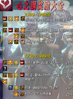 6、1000-1499层可以获得金币、金铲铲冠冕、光明装备、光明假人等。