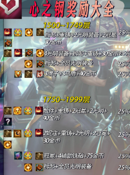 8、2000层可以获得三星五费卡、光明装备、大量金币、金铲铲冠冕等。