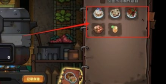 1、在游戏中,想要获取食谱的话需要我们自己进行摸索,制作出配方之后就能直接在记录里面添加了。