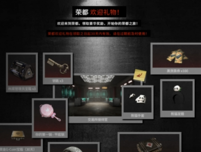3、礼包内包括了宝箱*3+钥匙,粉色平底锅、黑货票券*100、熊猫发箍、熊猫手套、unknown套装*30天、雪花降落伞、黄金宝箱*30天以及交易所接待室背景等道具。