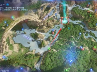 7、结束之后开启地图,就能看到目标位置发生了改变需要前往薄纱湖区域闪光瀑布的附近。