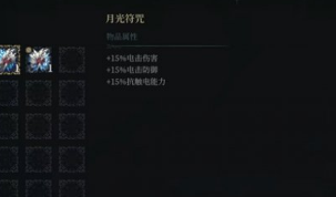 4、月光符咒可以为我们提供15%电击伤害以及防电的能力,是使用电系武器以及对抗电系boss的好手。