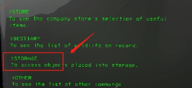 3、要想拿出来的话,需要在终端输入storage来到箱子界面。