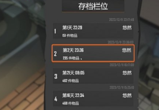 2、游戏里面一共有4个存档空间,在存档界面我们可以看到天数,存档时间以及物品数。