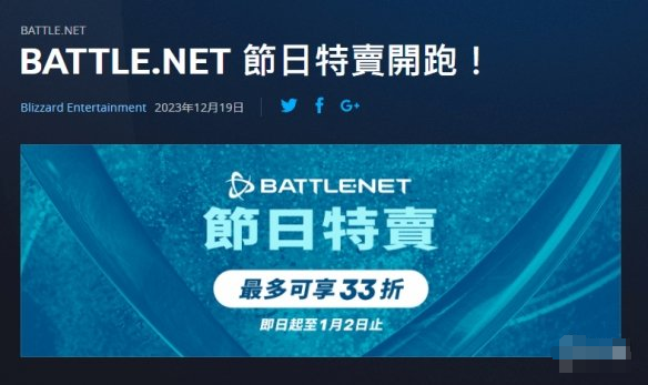 暴雪战网宣布开启节日特卖,最多可享3.3折,活动截止时间为明年1月2日。