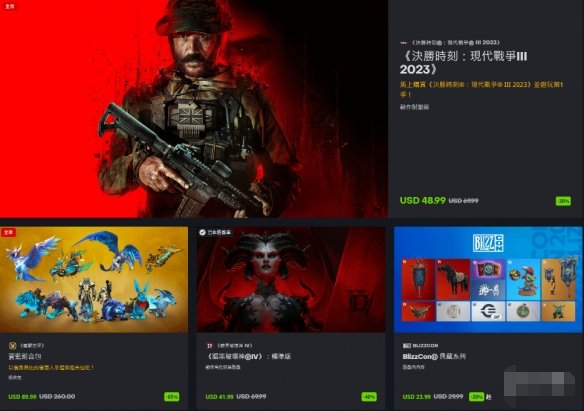 参与特卖活动的内容有《使命召唤20》、《暗黑破坏神4》以及《魔兽世界》、《守望先锋2》等多款游戏的内购组合包。感兴趣的朋友可前往战网平台查看。