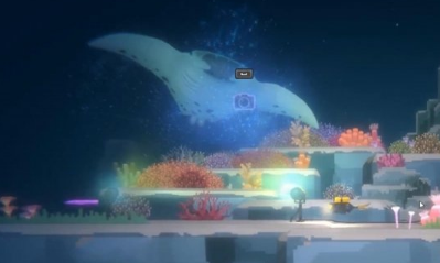 3、我们需要把灯具发电机修好之后躲在石头后就能见到蝠鲼。