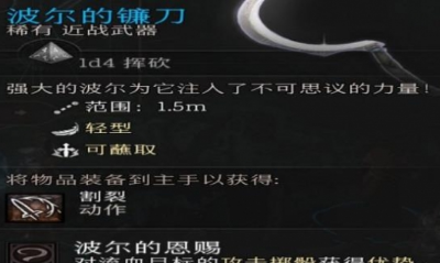 4、通过鉴定获得波尔镰刀,如果是击杀信徒掉落就没有特效了。