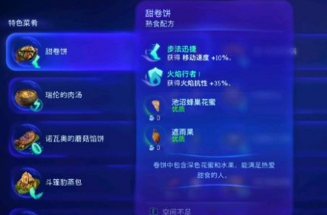 2、甜卷饼可以为我们提供两个buff,第一个buff是步法迅捷,效果为获得移动速度+10%。