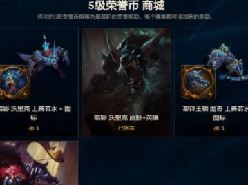 3、5级荣誉能够获得5个符石碎片以及皮肤碎片和蓝色精粹。